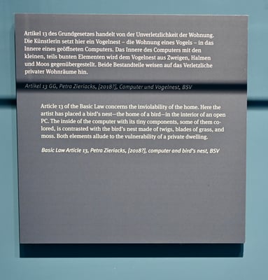 Zu sehen ist in dem neuen Museum auch eines meiner Werke, die künstlerische Umsetzung zum Grundgesetzartikel 13.