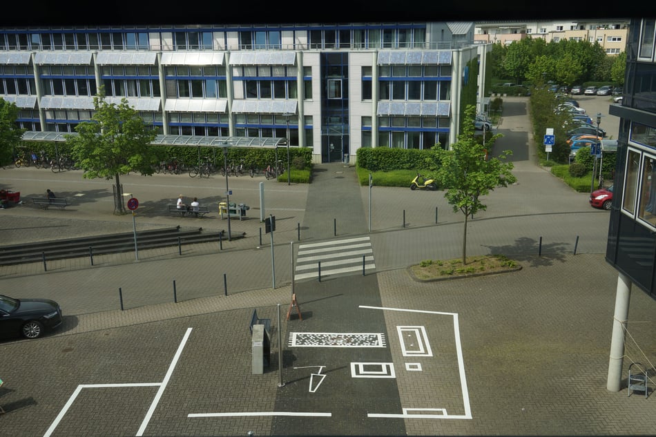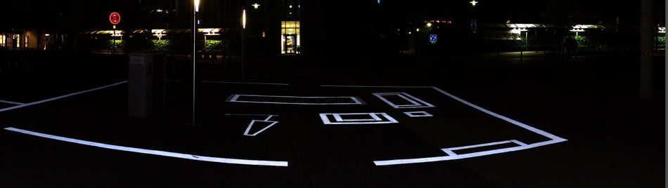 dabei direkt vor Ort entwickeln sollten. Für mein Projekt habe ich Strassenmarkierungen verwendet, um damit den Grundriss einer Wohnung auf dem Campusboden aufzubringen. Der Stromkasten hatte